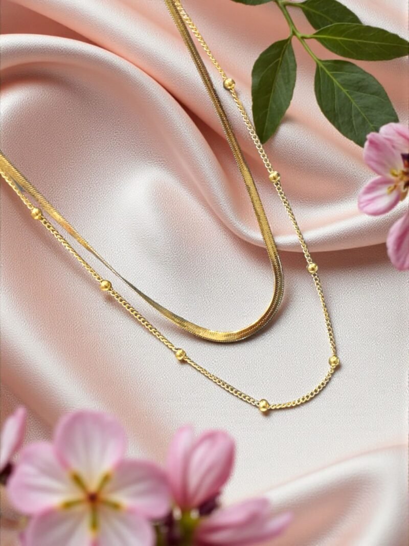 Chic Gold Layering Set: Snake Chain and Beaded Necklace