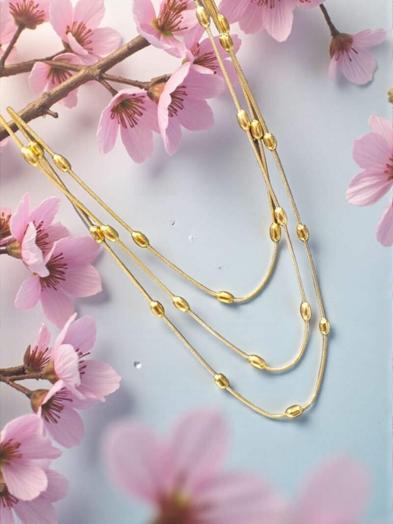 18k Anti-Tarnish Gold Layered Beaded Chain Necklace