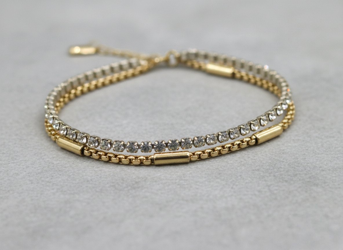 Be the first to review “Anti-Tarnish Dual-Layered Tennis & Bar Chain Gold Bracelet” Cancel reply