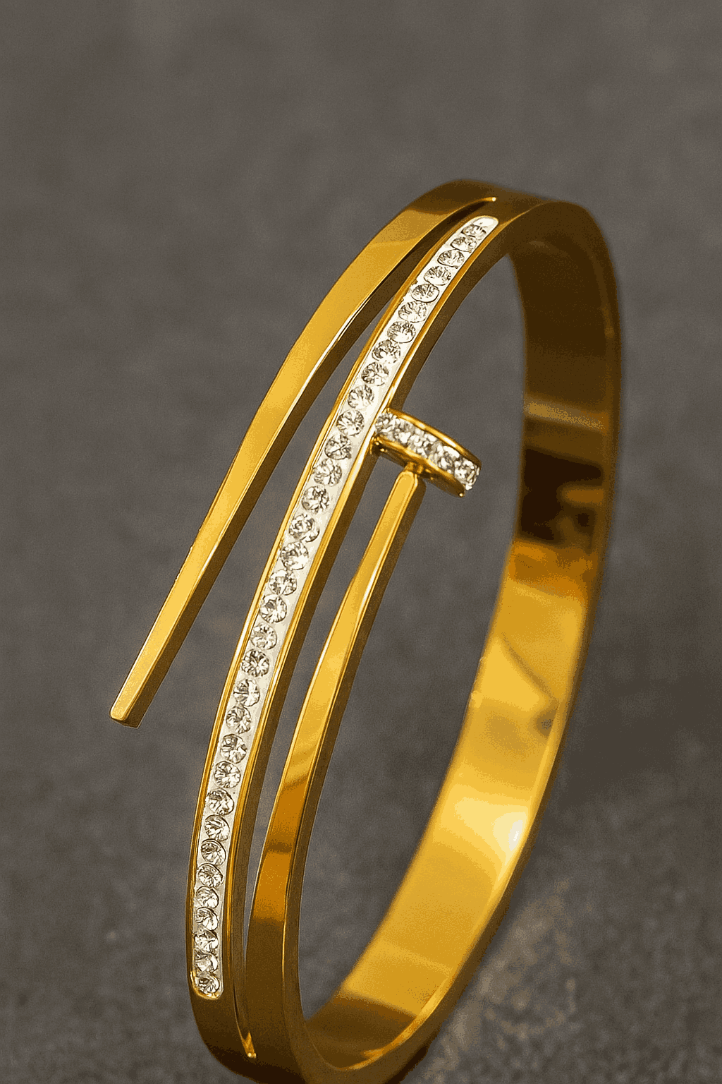 Baby size Bold Gold-Plated Nail Design Kada with Cubic Zirconia