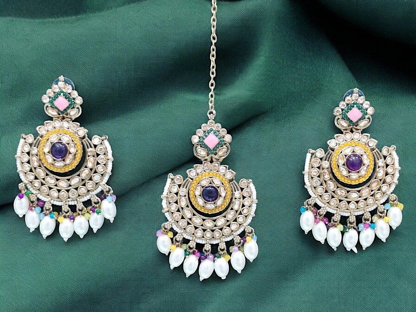BAHUBALI MULTI COLOUR HIGH QUALITY EARRINGS WITH TIKKA