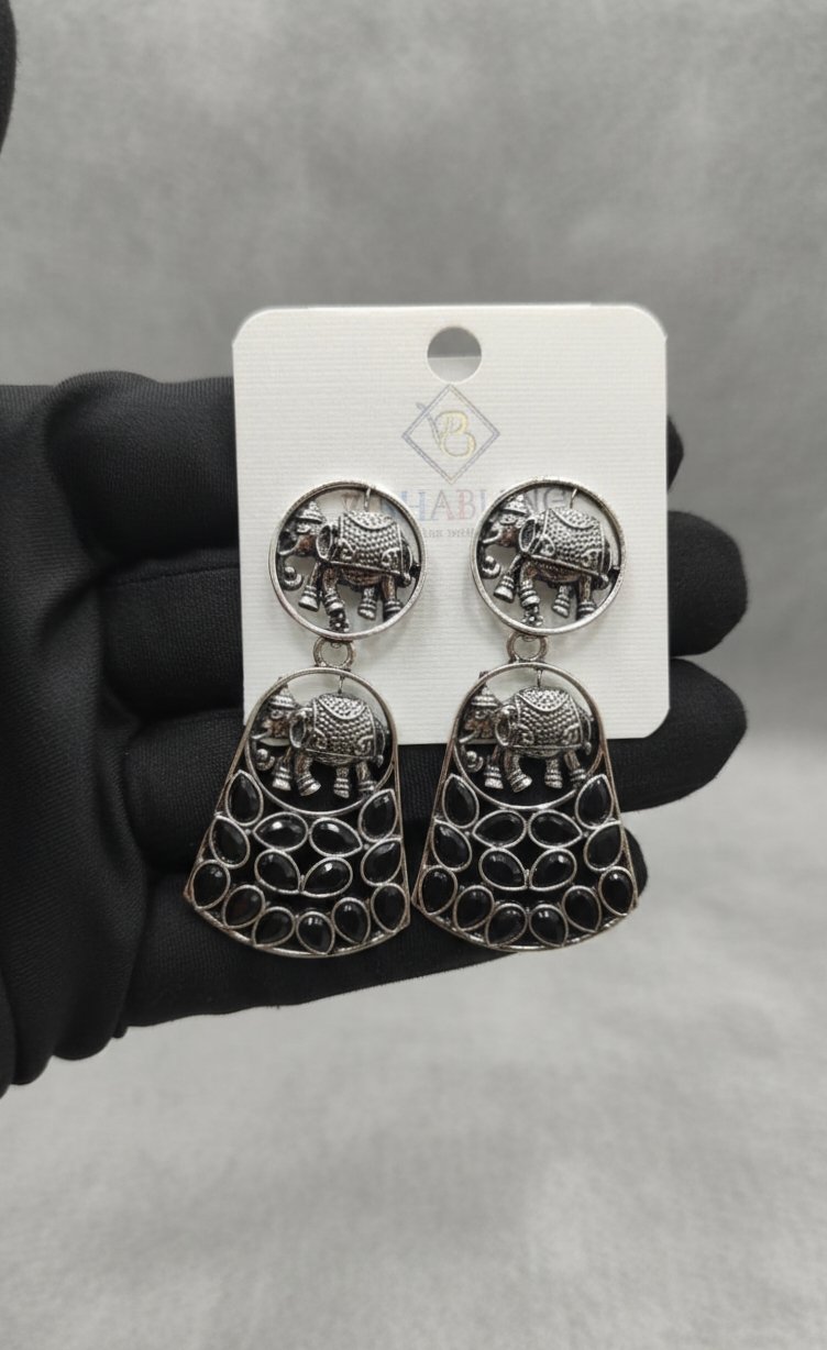 Black colour german silver unique earrings OXCB272