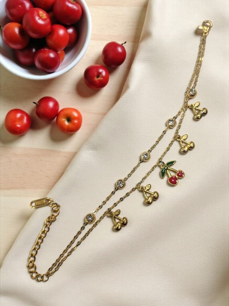 Be the first to review “Double-Strand Dangle Bracelet with Playful Cherry Charms” Cancel reply