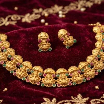 EIGHT DARKRED LOTUS SET NECKLACE