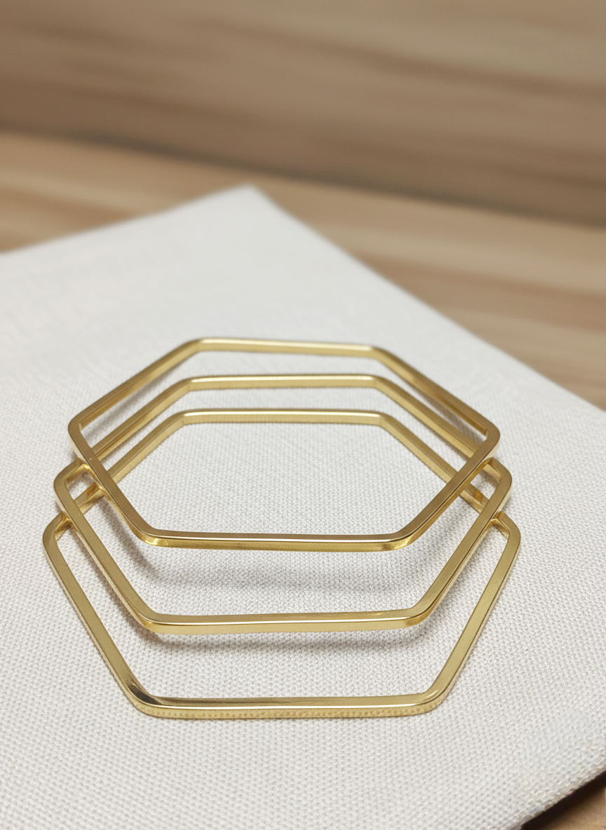 GOLD PLATED 3PC STAINLESS STEEL BANGLES ATK830