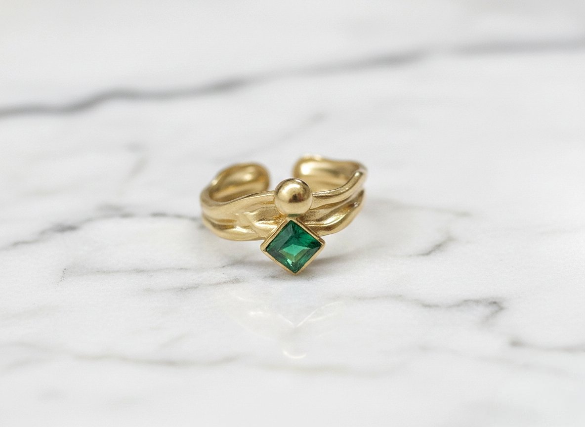 GOLD PLATED ANTI TARNISH ADJUSTABLE RING DESIGN NO ATR589GREEN