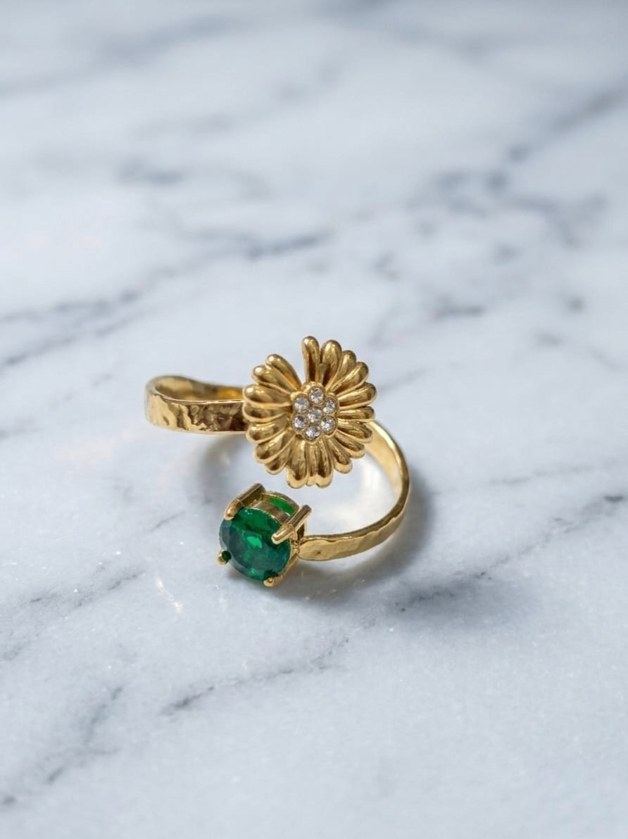 GOLD PLATED ANTI TARNISH ADJUSTABLE RING DESIGN NO ATR620GREEN