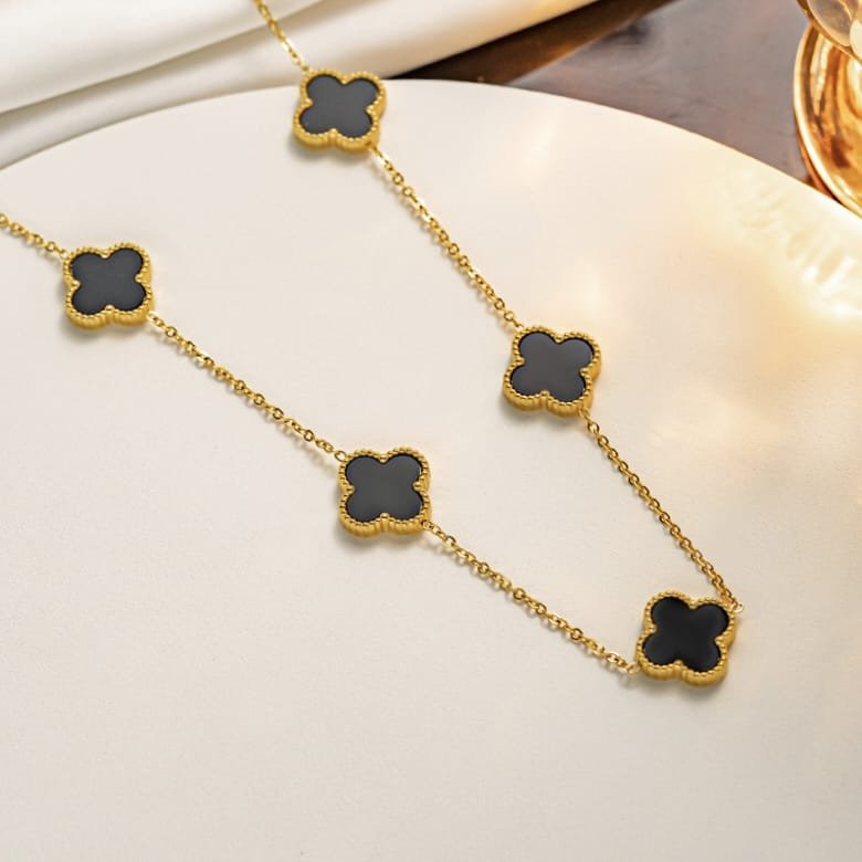 GOLD PLATED ANTITARNISH CHAIN WITH BLACK CLOVER