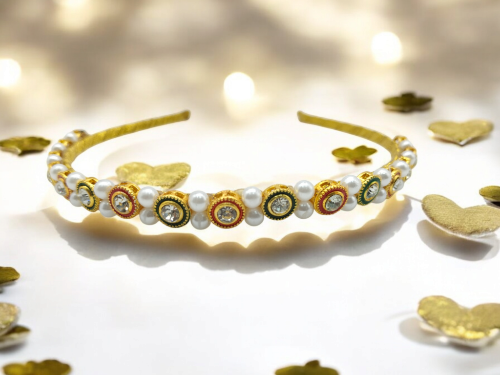 KUNDAN WITH AD WORK ERNIC GOLD PLATED HAIR BAND