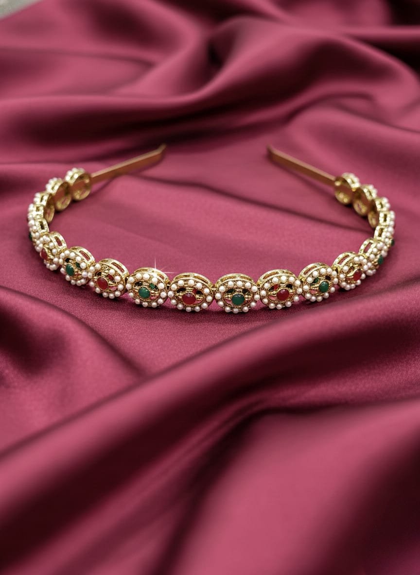 KUNDAN WITH AD WORK ETHNIC GOLD PLATED MULTICOLOUR HAIR BAND