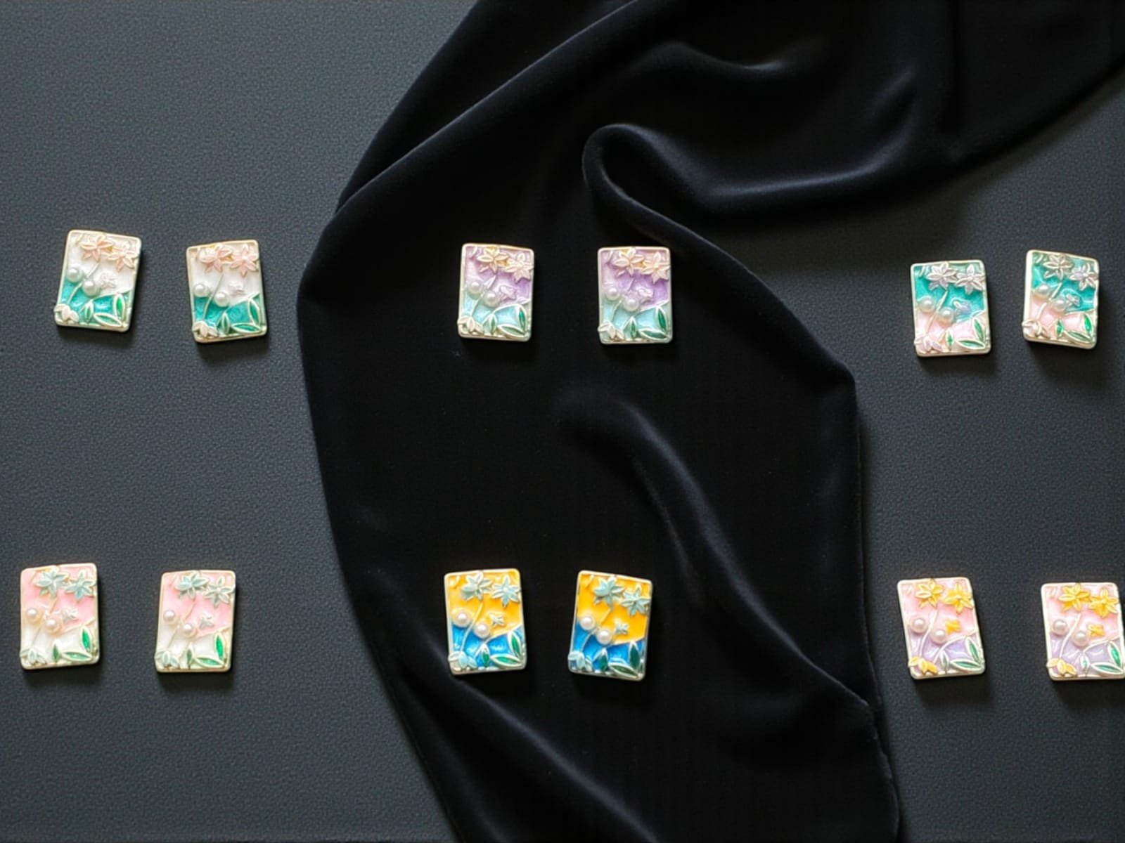 Mini Floral Enamel Stud Earrings with Pearl Accents (6 Pairs)