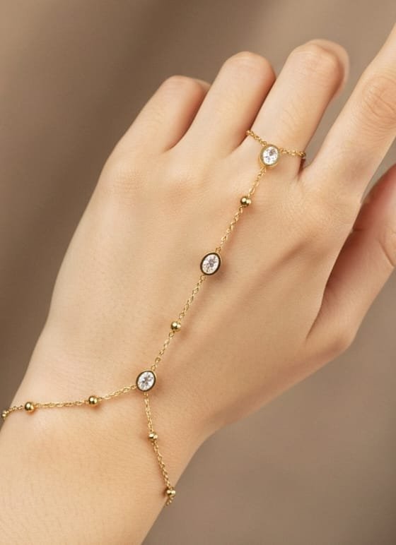 Be the first to review “Minimalist Round CZ Gold Beaded Hand Chain” Cancel reply