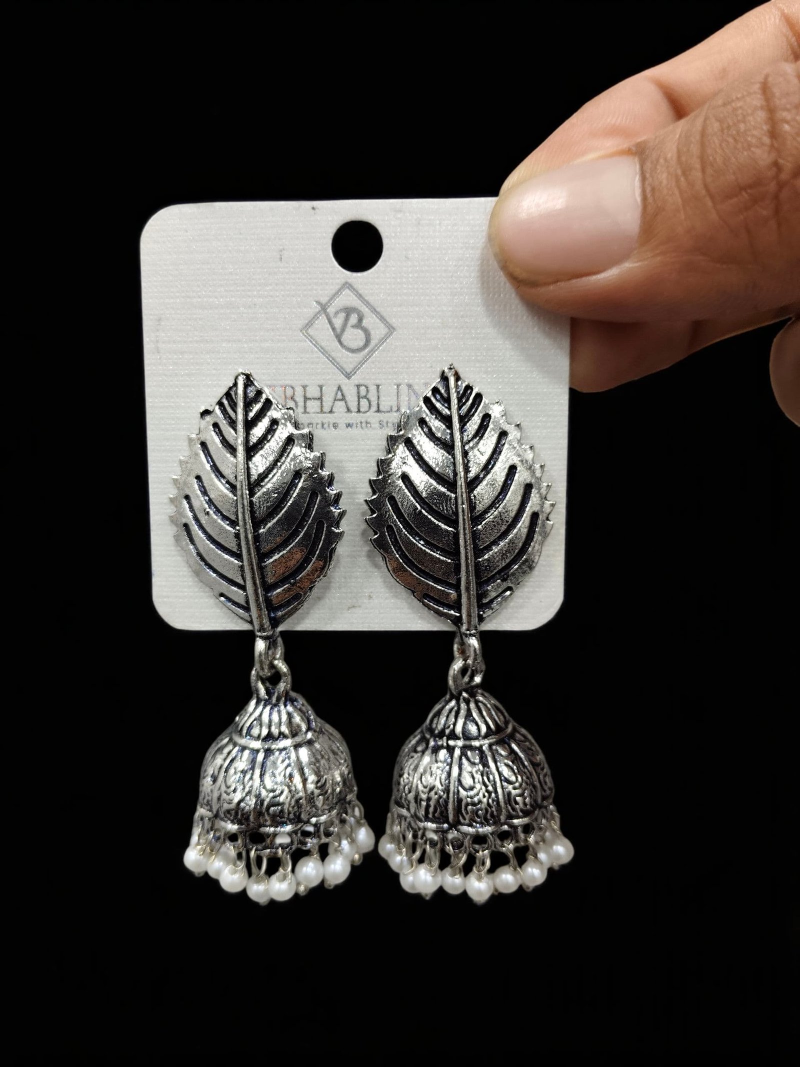 Be the first to review “OXIDISED LEAF DROP JHUMKI EARRINGS”