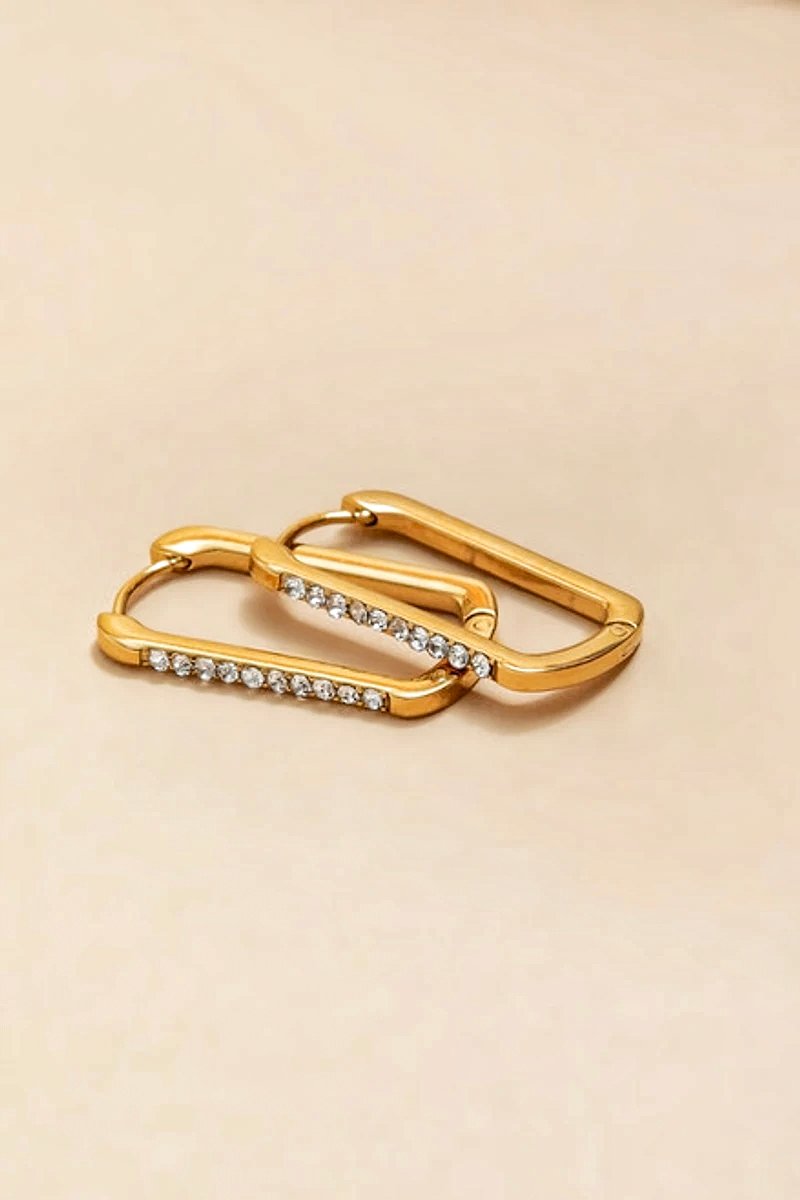 Premium Anti-Tarnish Gold Plated Rectangular Hoop Earrings with Zircon Stones