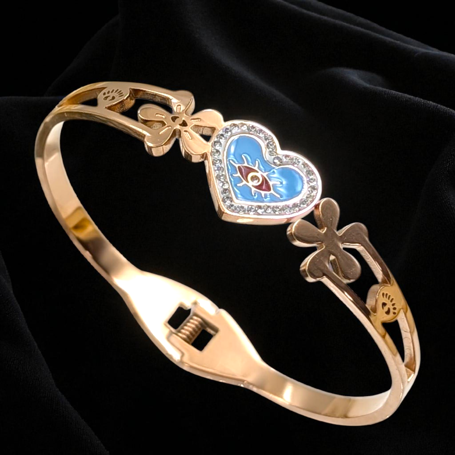Rosegold evil eye enamel on heart anti tarnish kada