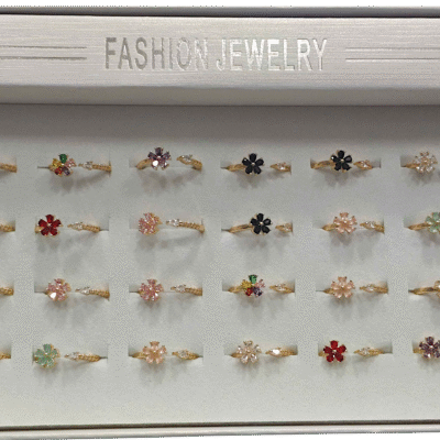 GOLDEN AD WITH COLOURFUL FLOWER 24PC RING BOX