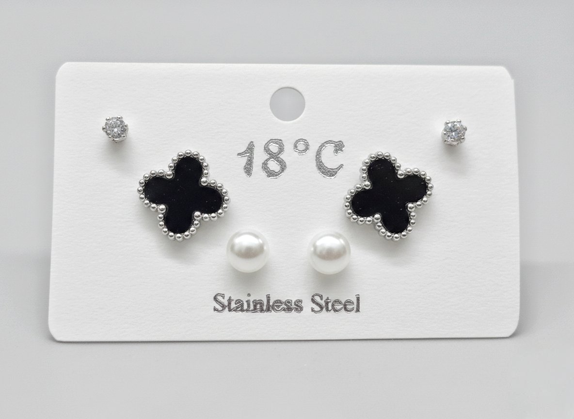 SILVER CLOVER COMBO ANTITARNISH EARRINGS