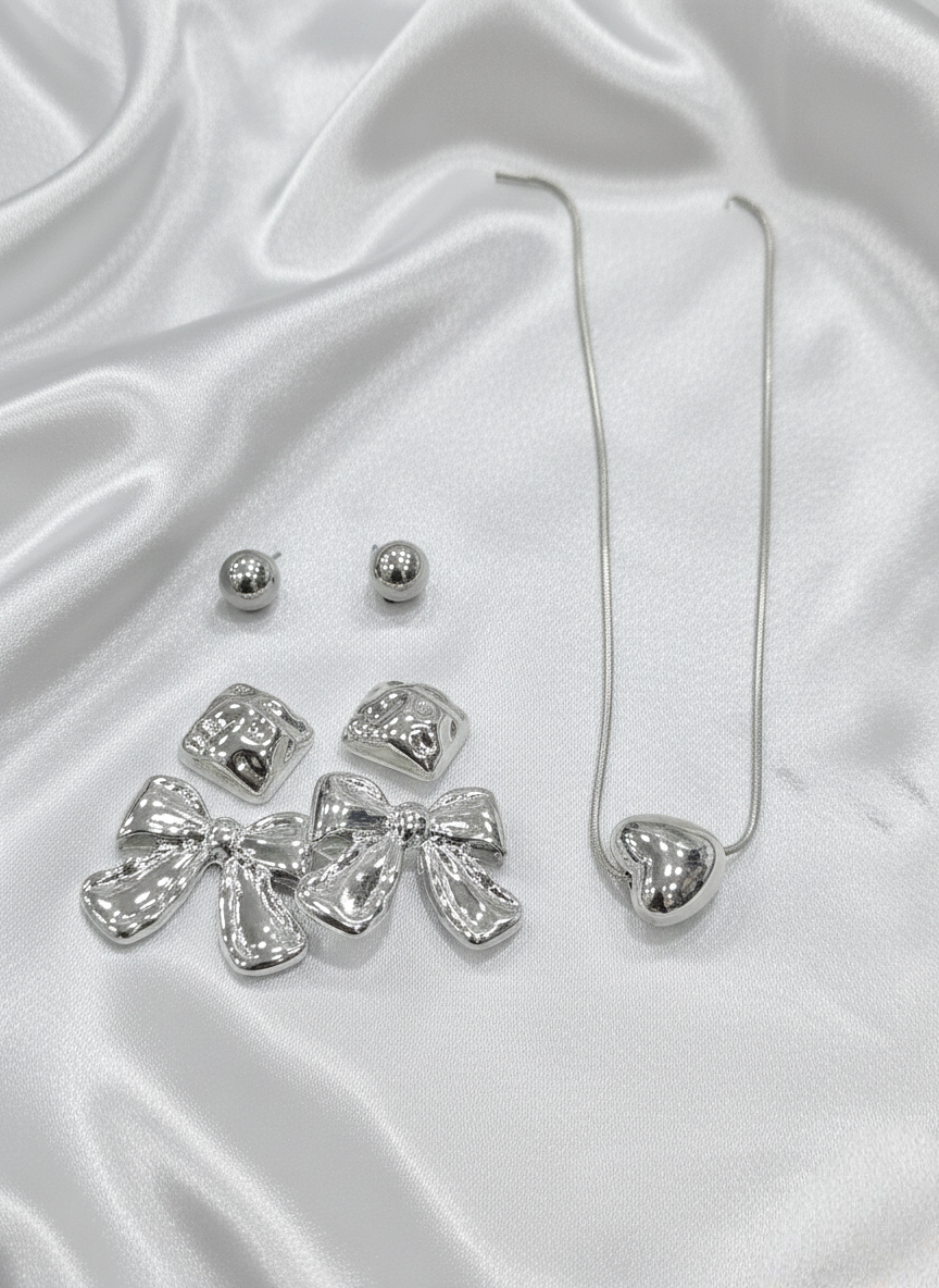 Be the first to review “Silver fancy chain with combo earrings”
