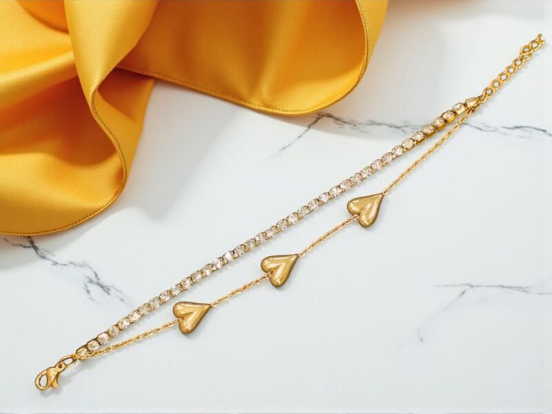 Be the first to review “Tarnish-Resistant Round Cut CZ Tennis and Minimalist Heart Bracelet”