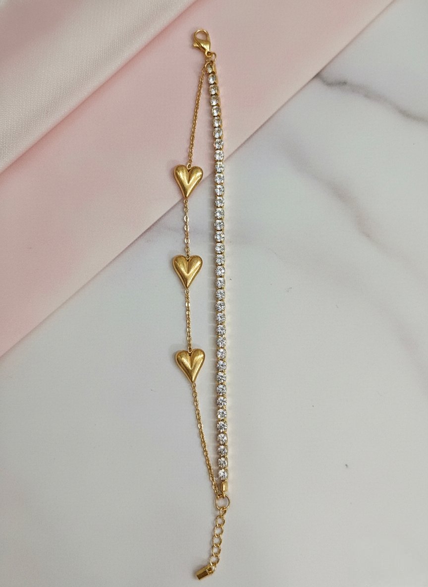 The “Love Eternal” Layered Bracelet: Dainty Gold Hearts & Sparkling Tennis Chain