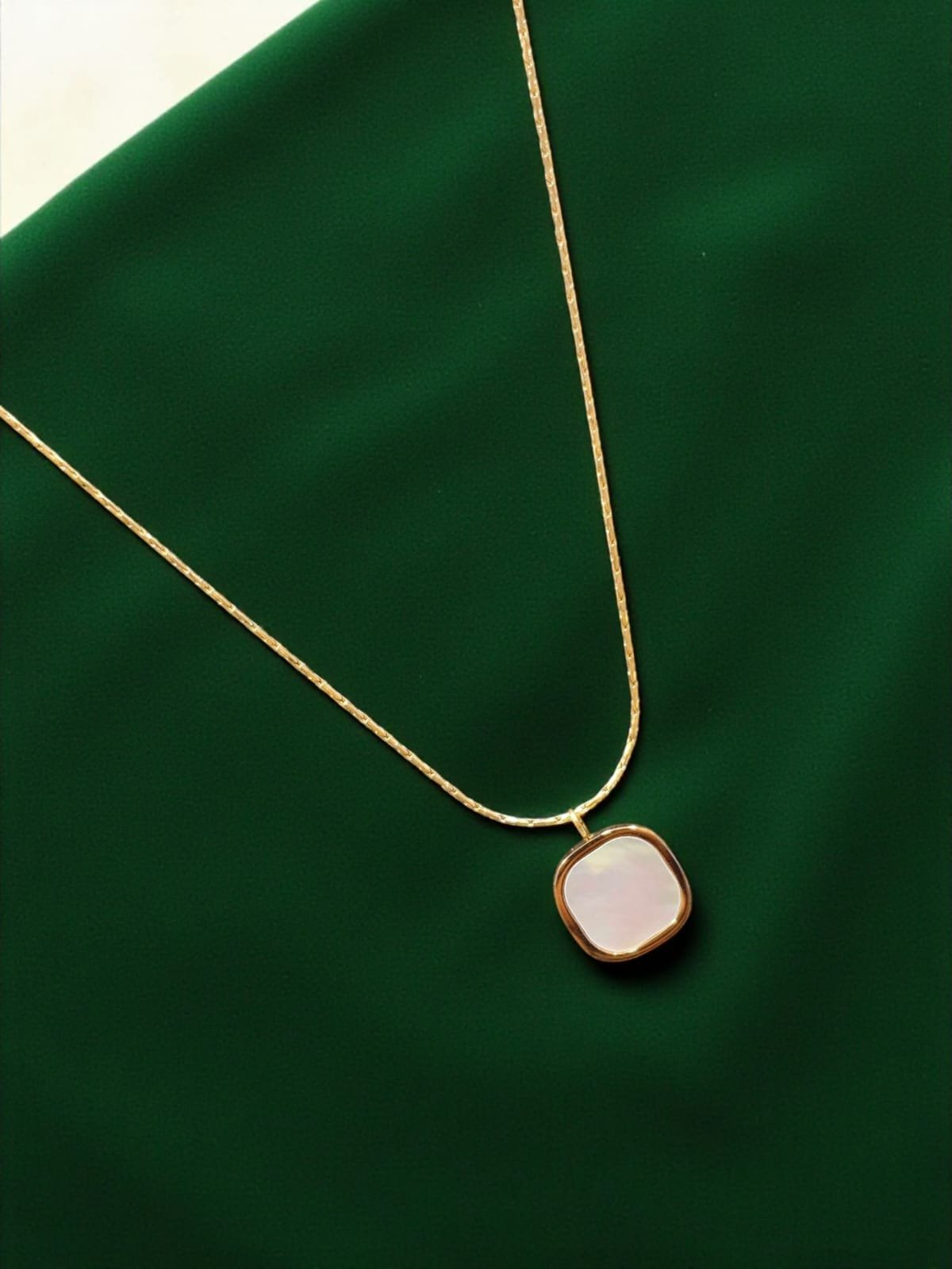 Timeless Mother of Pearl Square Pendant Anti-Tarnish Gold Tone Minimalist Chain