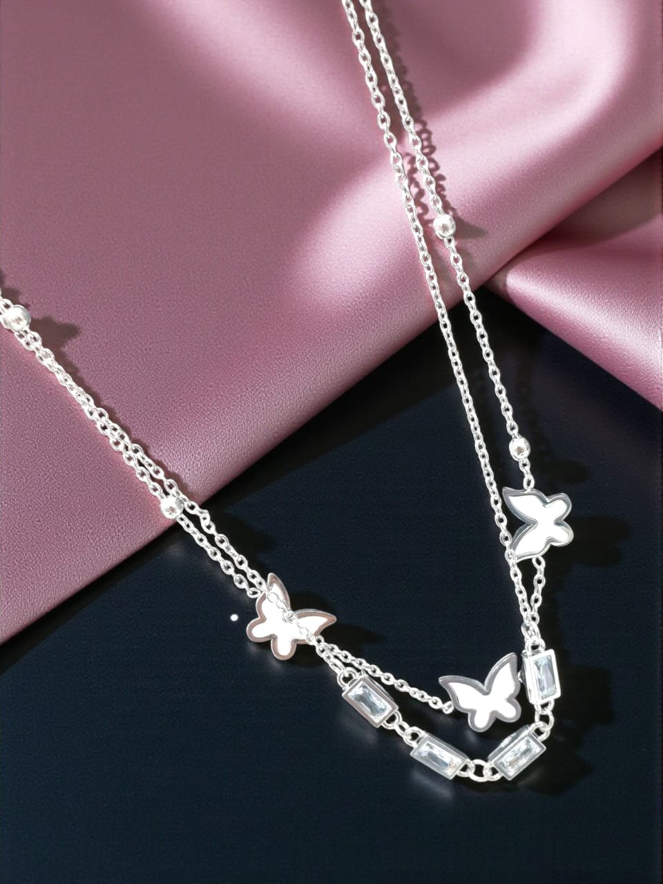 Two layer white butterfly charm anti tarnish premium chain with cz stones