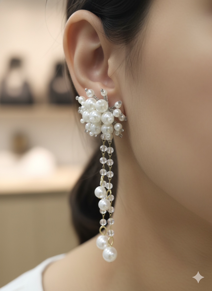 Be the first to review “White Pearl Bouquet Stud with Crystal Chain Dangles” Cancel reply